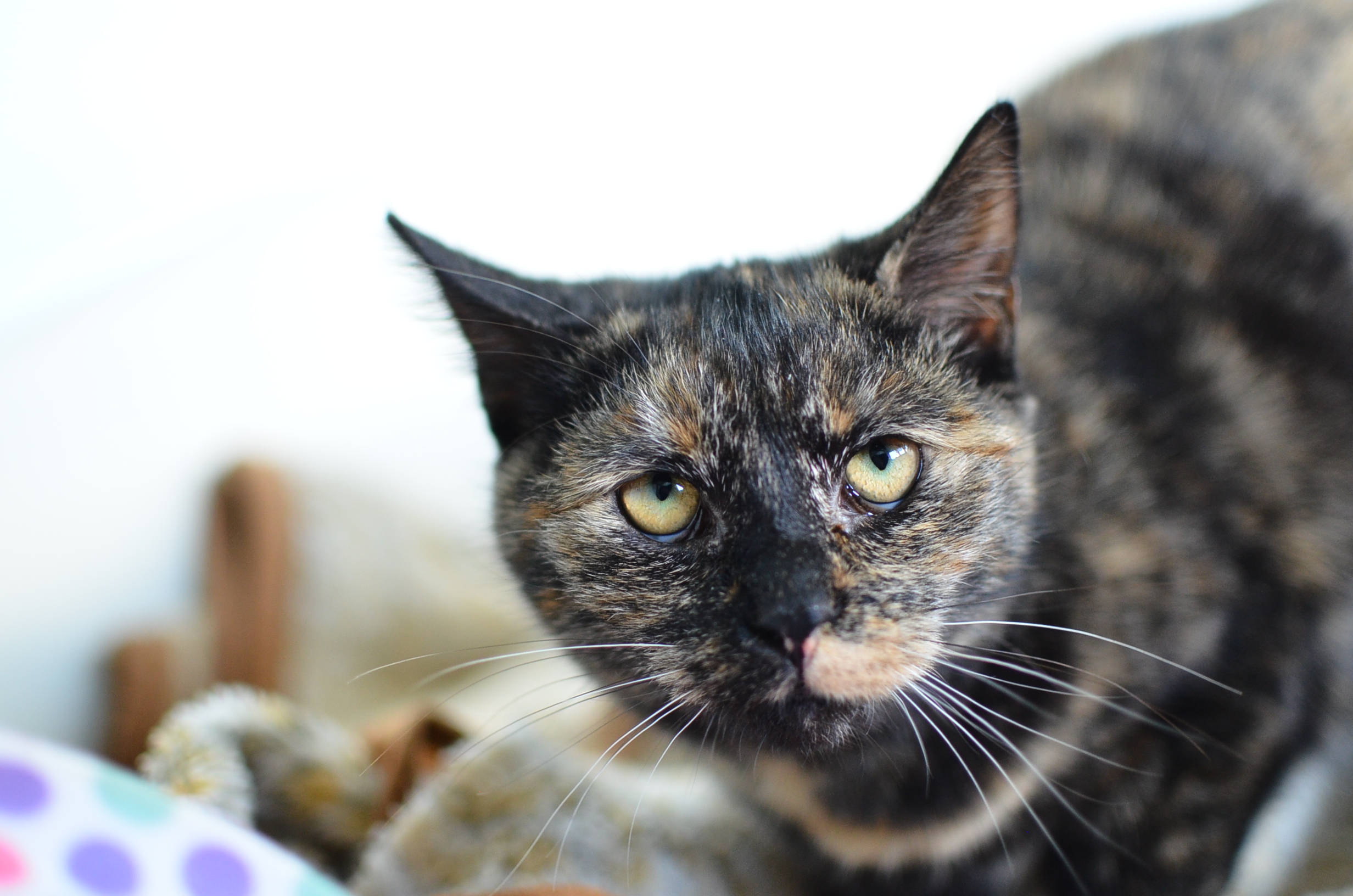 radovedna, malce svojeglava muca, stara cca pol leta. Veterinarsko urejena. Če bi jo posvojili, nam pišite na zavetisce.turk@gmail.com