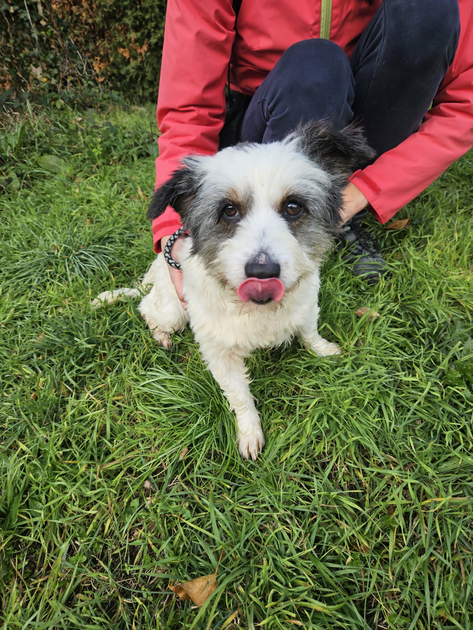 Odrasel mešanec, star cca 3 leta, večje rasti. Bil prostoživeč kuža v pravem pomenu te besede. Ne pozna stika z ljudmi, bil navajen prosto hoditi po daljših relacijah (Novo mesto z okolico). Zaenkrat mu stik z ljudmi predstavlja strah in stres, v socializaciji napreduje zelo počasi. Sicer veterinarsko urejen.